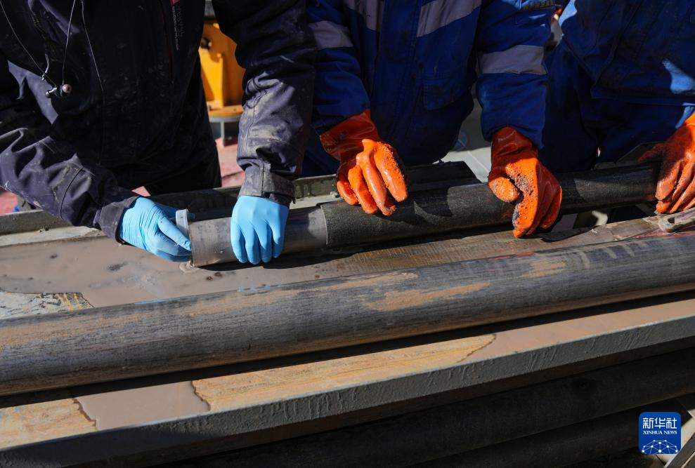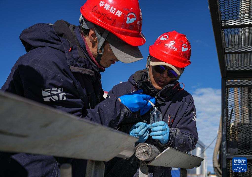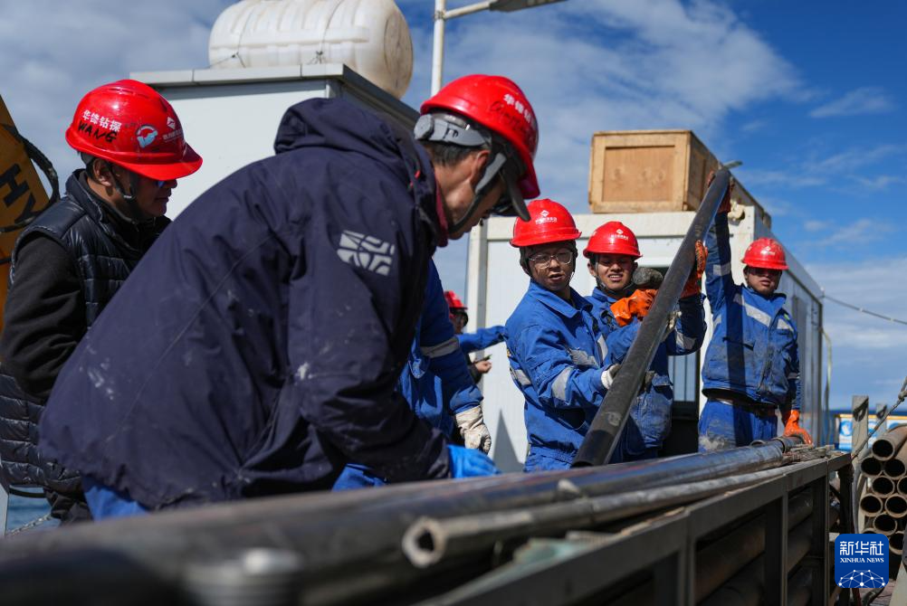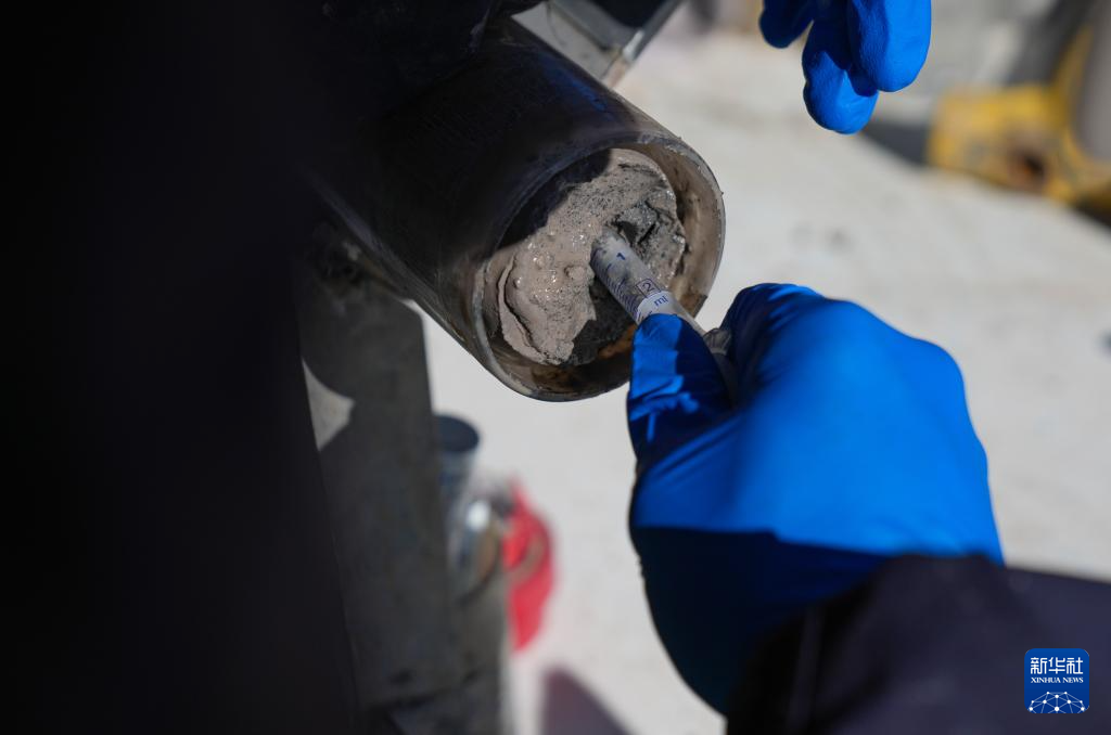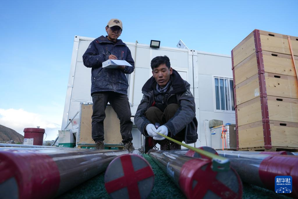 7月11日,鑽探人員正在提取湖泊岩芯。新華社記者 晉美多吉 攝