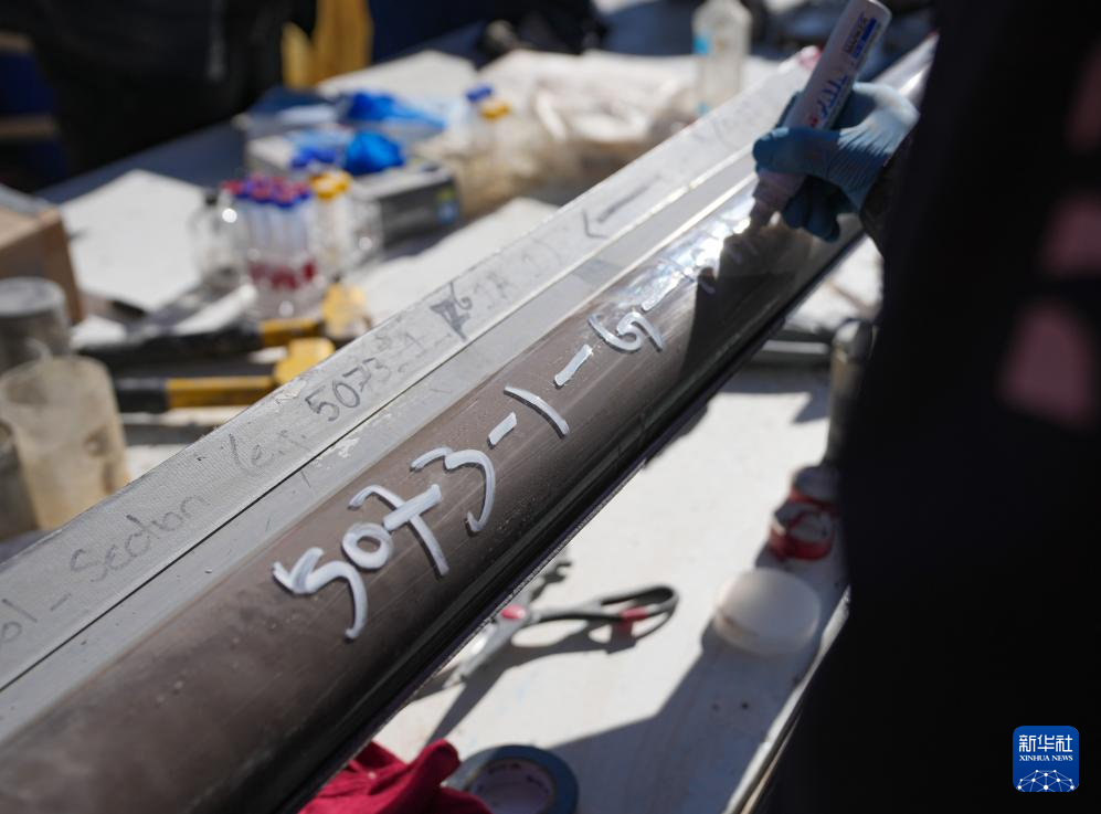 科研人員通過采集到的含有湖底沉積物的湖泊岩芯,來解析納木錯地區的環境氣候變化信息,從(cong) 而為(wei) 應對氣候變化提供科學依據。
