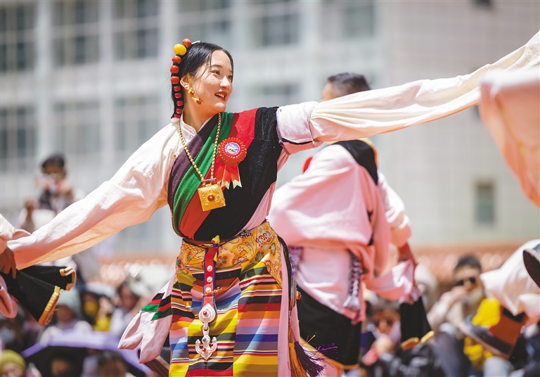 “我現在是縣藝術團的一名演職人員,除了基本工資外,還有排練補助、演出場次補助、夥(huo) 食補助等,月收入5000元左右。成為(wei) 演職人員後,除了去杭州、玉樹等地進行交流演出外,還參加了那曲市舉(ju) 辦的各種大型演出活動。”格加村文藝隊隊員次旺拉姆自豪地說。