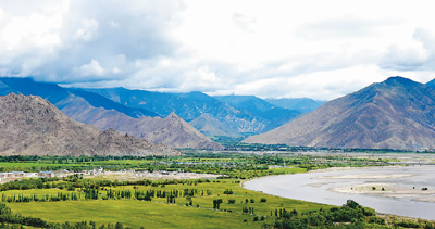 西藏自治區山南市,雅魯藏布江畔綠意濃。