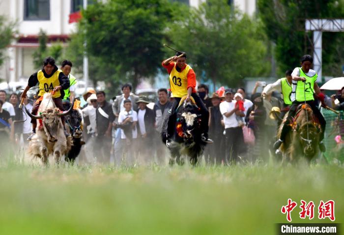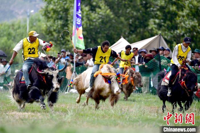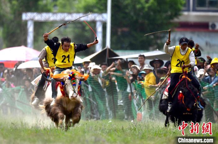 犛牛被譽為(wei) “高原之舟”,賽犛牛是藏族的傳(chuan) 統體(ti) 育項目。比賽現場,騎手們(men) 精神抖擻,待於(yu) 起跑線;發令後即馭牛疾奔,以先到終點者為(wei) 勝。賽場上競爭(zheng) 激烈;賽場外民眾(zhong) 也為(wei) 騎手們(men) 加油歡呼,比賽熱鬧非凡。