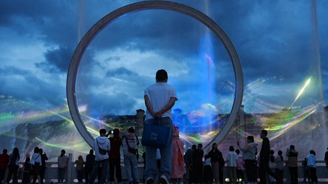 日落西山,微風輕撫,林芝市工布公園裏熱鬧又悠閑。絡繹不絕的遊客和市民前來觀看夢幻水秀表演,絢麗(li) 多彩的燈光秀引得觀眾(zhong) 發出陣陣驚呼。