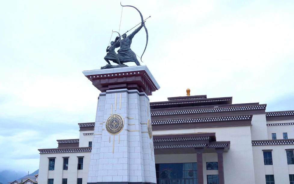 工布公園裏的主題雕塑——畢秀之子(7月21日攝)。朱俊 攝