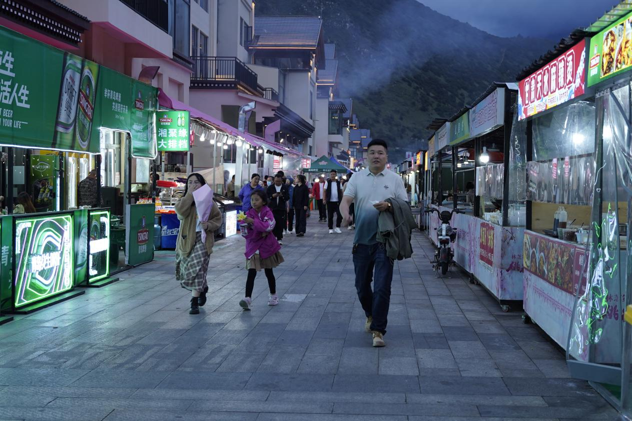 公園旁邊的幸福夜市吸引了很多當地群眾(zhong) 和遊客。重慶燒烤、陝西肉夾饃、東(dong) 北冷麵……來自全國各地的特色美食,漫步在美食街,香味縈繞,人心暖暖。