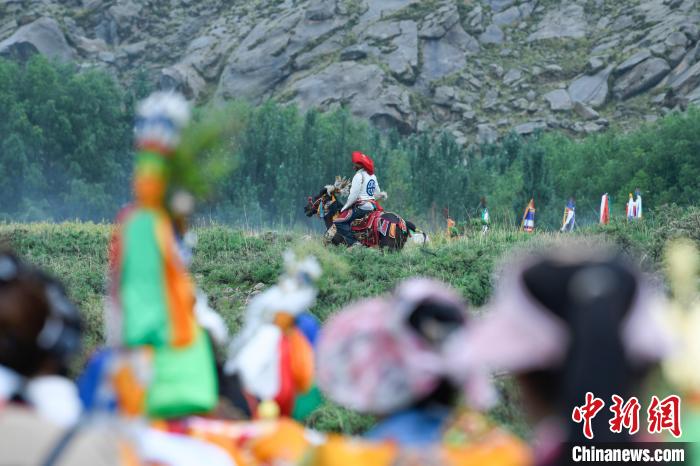 7月24日,西藏拉薩市曲水縣南木村迎來了一年一度的“望果節”。當日,村民們(men) 盛裝打扮背上經文,圍繞全村田園轉上一圈,轉到每一塊農(nong) 田前都要煨桑祈求風調雨順、五穀豐(feng) 登。“望果節”民俗已有1500多年的曆史,是國家級非物質文化遺產(chan) 。圖為(wei) 曲水縣南木村村民身著盛裝騎馬繞田。中新社記者 貢嘎來鬆 攝