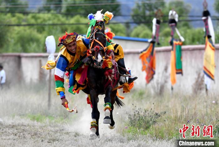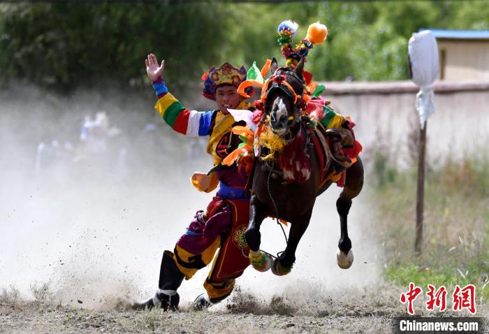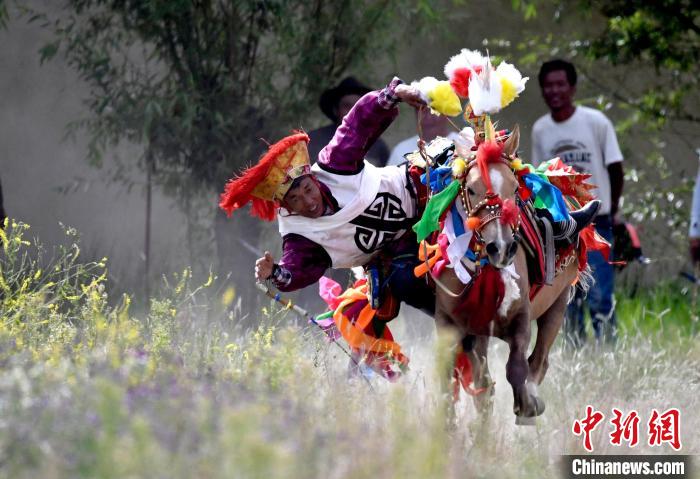7月27日,西藏拉薩市桑達村迎來“望果節”,村民們(men) 舉(ju) 行賽馬活動慶祝。“望果節”是西藏傳(chuan) 統的豐(feng) 收節,具體(ti) 日期隨各地莊稼成熟的時間而變化。“望果節”期間,按照習(xi) 俗,各地都會(hui) 舉(ju) 辦賽馬比賽。圖為(wei) 騎手進行馬術表演。中新社記者 李林 攝