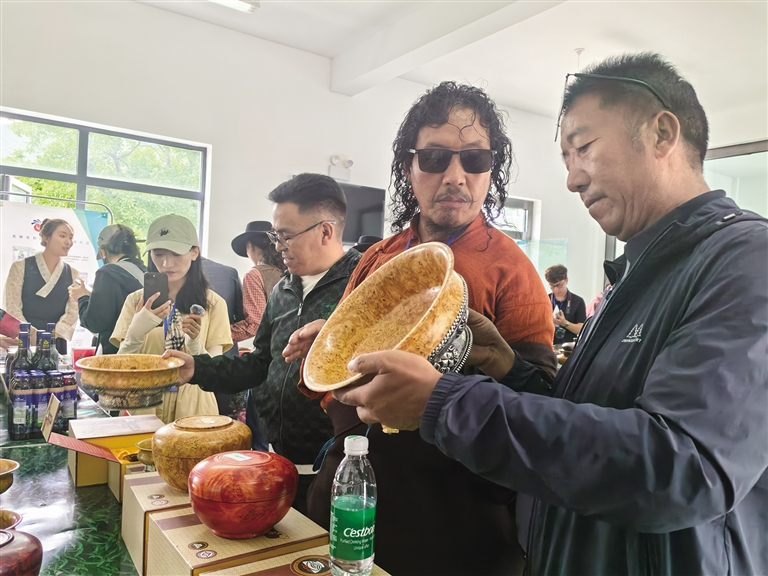 探訪團在加查縣的非物質文化遺產(chan) 展覽上被加查服飾、竹編、石鍋和加查木碗等傳(chuan) 統手工藝品所吸引,這些手工藝品不僅(jin) 展示了山南豐(feng) 富的文化底蘊,還體(ti) 現了當地人民對美好生活的追求和向往。