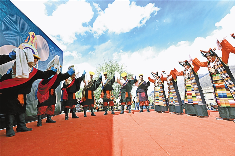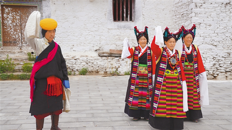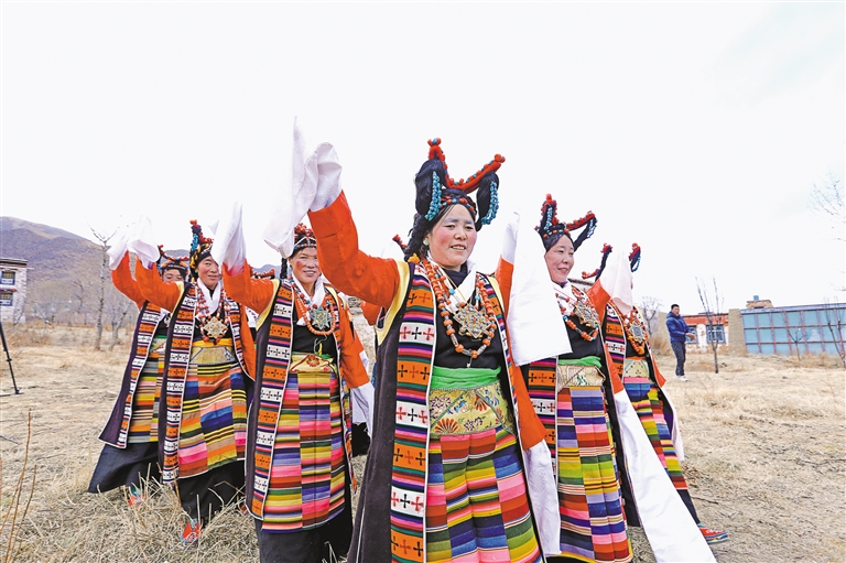 “如今,這支隊伍已發展到20多名成員,都是當地群眾(zhong) 。藝術隊經常受邀參加各種大小晚會(hui) 、重要節日演出和赴區內(nei) 外非遺展演等,其影響力和傳(chuan) 播力不斷提升,特別是甲瑪諧欽《和親(qin) 路》受到廣泛歡迎。”甲瑪鄉(xiang) 工作人員德吉卓嘎說。