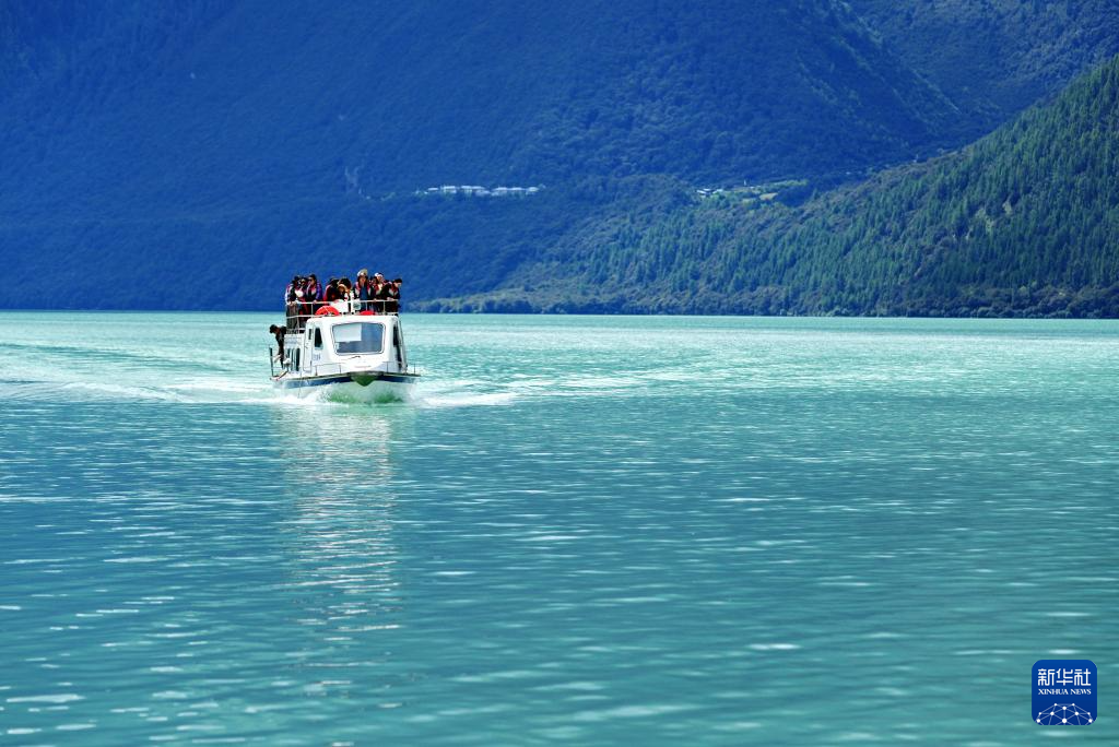 巴鬆措裏的遊船(8月2日攝)。新華社記者 張汝鋒 攝