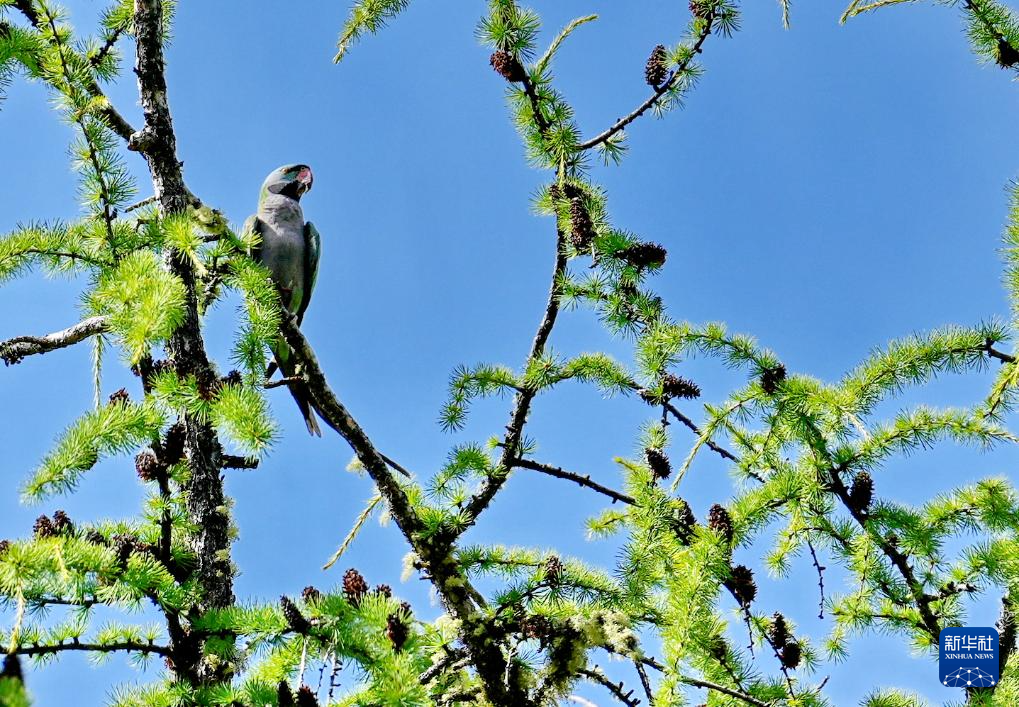 棲息在巴鬆措旅遊風景區內(nei) 的大紫胸鸚鵡(8月2日攝)。新華社記者 張汝鋒 攝