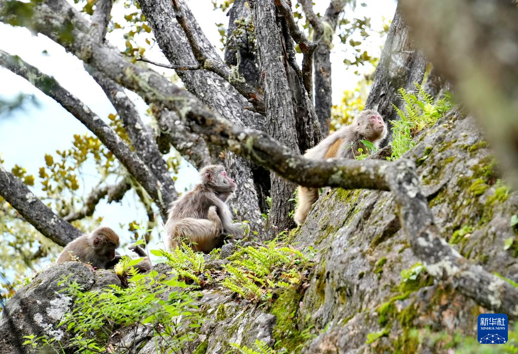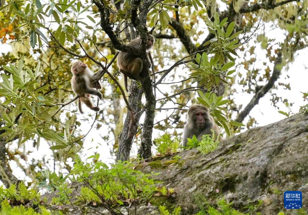 巴鬆措旅遊風景區裏的藏獼猴(8月2日攝)。新華社記者 張汝鋒 攝