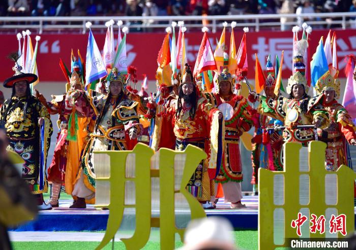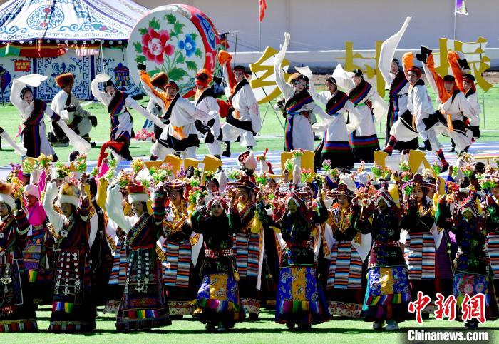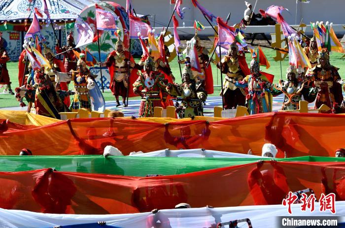 8月10日,2024年那曲恰青賽馬節暨第三屆“鄉(xiang) 村振興(xing) 那曲奮進”活動開幕式在那曲市賽馬場舉(ju) 行,精彩的文藝歌舞、馬術表演等展示著羌塘草原上的無窮魅力和活力。圖為(wei) 開幕式文藝表演現場。中新社記者 李林 攝