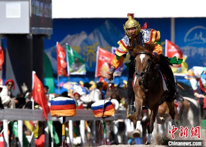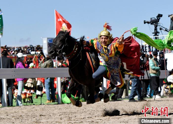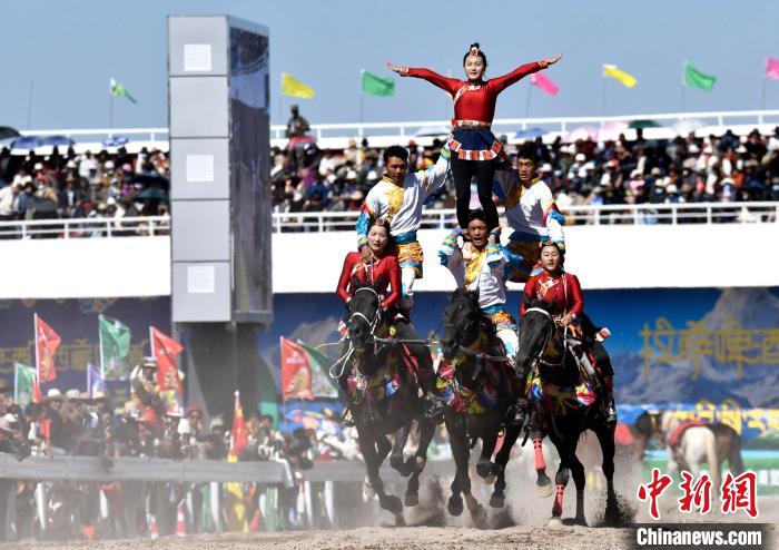 8月10日,2024年那曲恰青賽馬節暨第三屆“鄉(xiang) 村振興(xing) 那曲奮進”活動開幕式在那曲市賽馬場舉(ju) 行,精彩的文藝歌舞、馬術表演等展示著羌塘草原上的無窮魅力和活力。圖為(wei) 開幕式上的馬術表演。中新社記者 李林 攝
