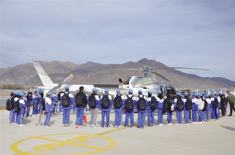 拉薩市中學生開展“遊學幸福新拉薩 共築美麗(li) 中國夢”主題研學實踐教育活動,參觀高原直升機。