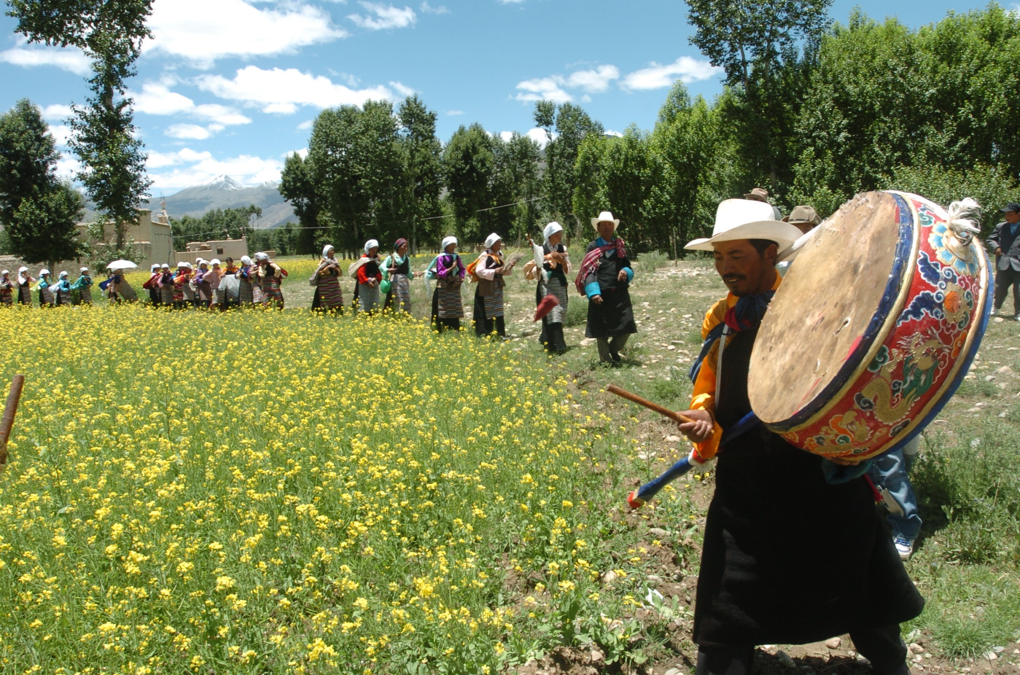 林周,藏語譯為(wei) “天然形成的沃土”,被譽為(wei) “拉薩的後花園”、“拉薩的糧倉(cang) ”,天然肥沃的土壤把林周縣分為(wei) 兩(liang) 種特殊的地貌,草原和耕地,養(yang) 育了眾(zhong) 多的林周人。圖為(wei) 林周縣群眾(zhong) 慶祝“望果節”。