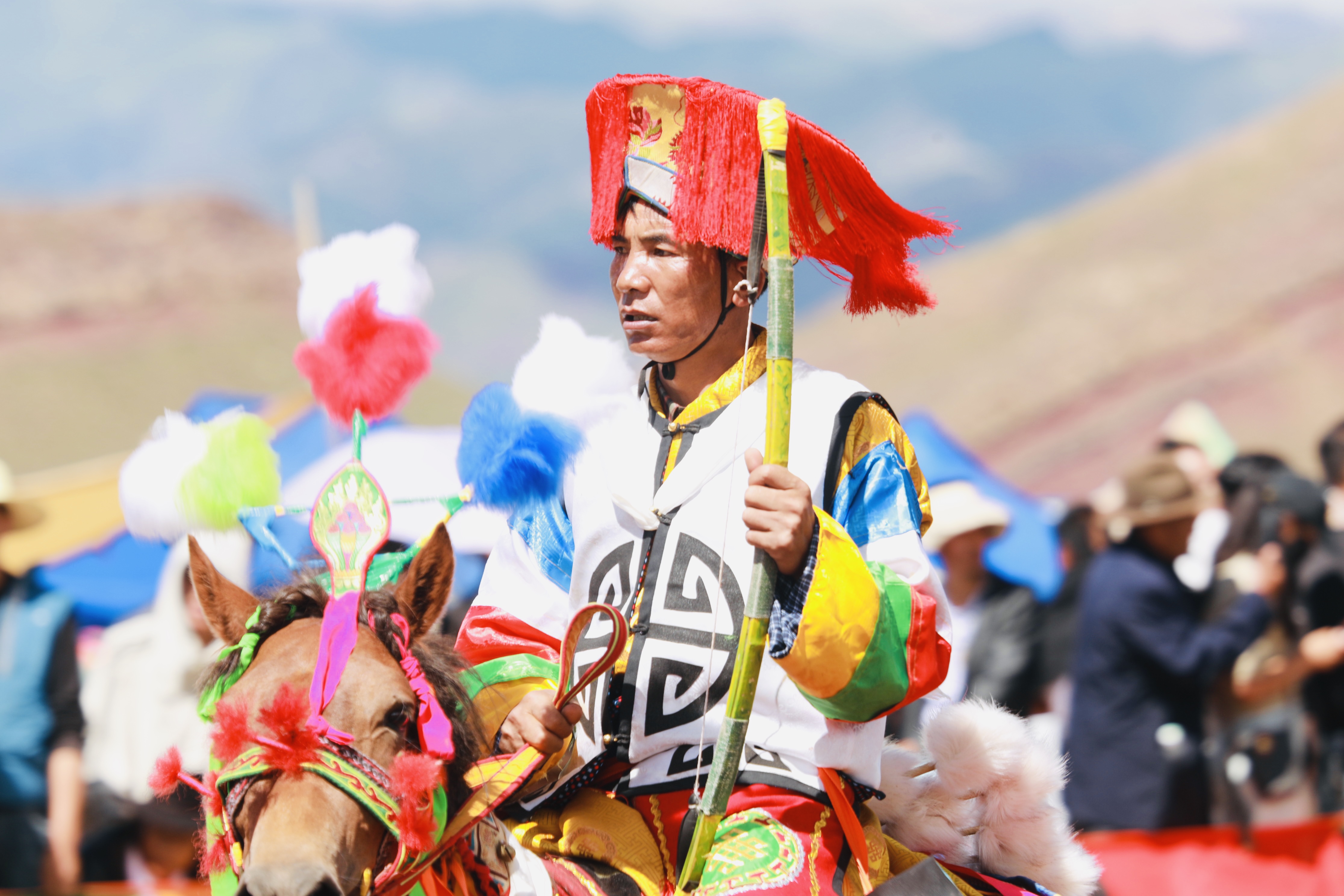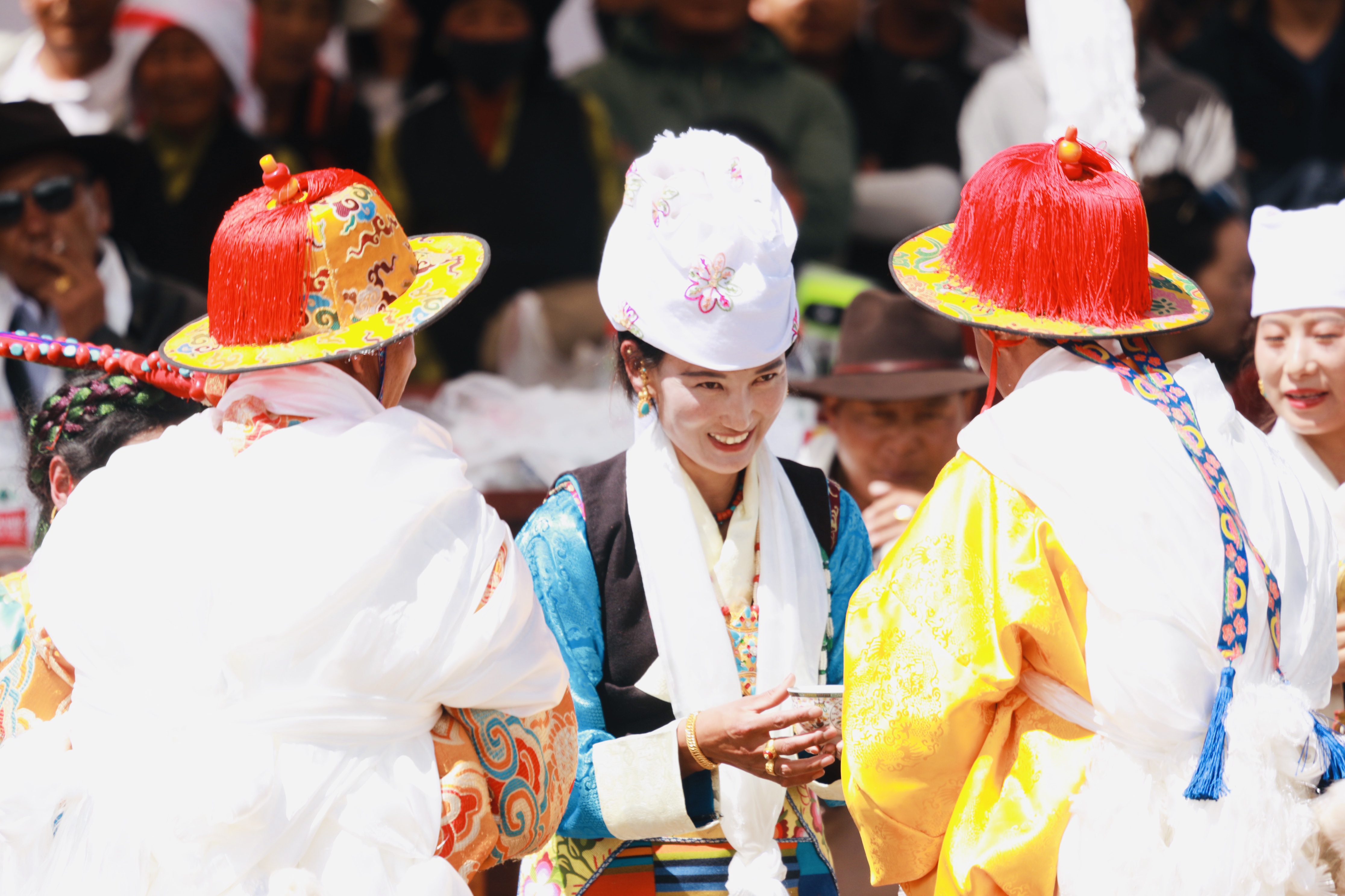 據悉,賽馬是西藏各地為(wei) 慶祝豐(feng) 收舉(ju) 行“望果節”(賽馬節)時的傳(chuan) 統慶典活動,是群眾(zhong) 最為(wei) 喜愛、流傳(chuan) 最廣的體(ti) 育運動之一。圖為(wei) 衝(chong) 許嘛(藏語意為(wei) “敬酒者”)為(wei) 騎手唱歌、敬酒、敬茶。