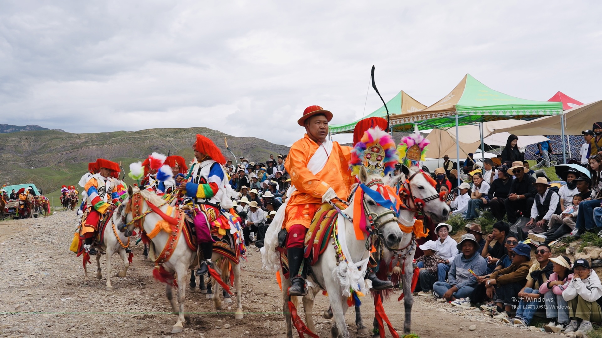 在林周縣邊交林鄉(xiang) 當傑村“望果節”活動現場,隨著激昂的《運動員進行曲》,當傑村“平措林望果節”活動拉開帷幕,38名馬術運動員、38名射箭運動員在2萬(wan) 多名觀眾(zhong) 的歡呼聲中邁入現場。圖為(wei) 賽馬選手參加射箭比賽。