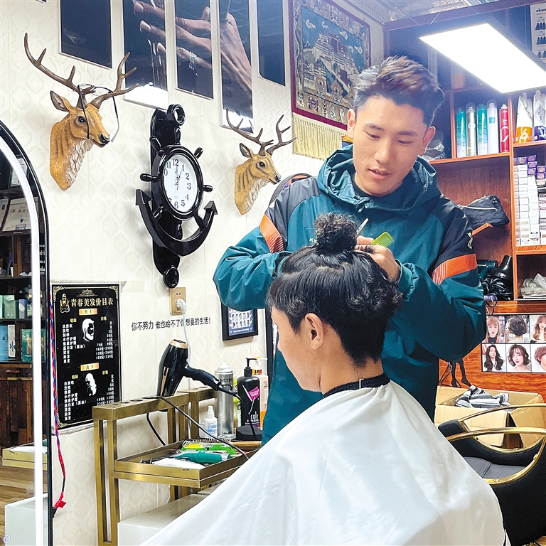 “工欲善其事,必先利其器。”巴桑加措上學時學的並不是美容美發專(zhuan) 業(ye) ,為(wei) 了實現自己的夢想,他憑借一股闖勁,於(yu) 2023年2月毅然辭職選擇創業(ye) ,遠赴重慶市、日喀則市當學徒,僅(jin) 用半年時間,便學成了“洗剪吹燙染”等技能。