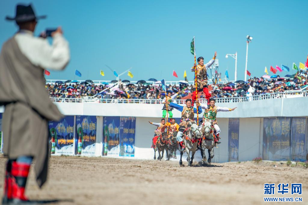 8月10日,2024年恰青賽馬節開幕式馬術表演。新華網 旦增努布 攝