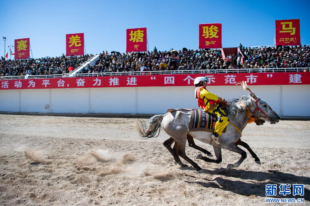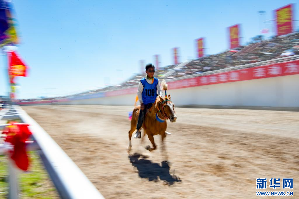 8月11日,騎手在場名馬冠軍(jun) 比賽中。新華網 旦增努布 攝