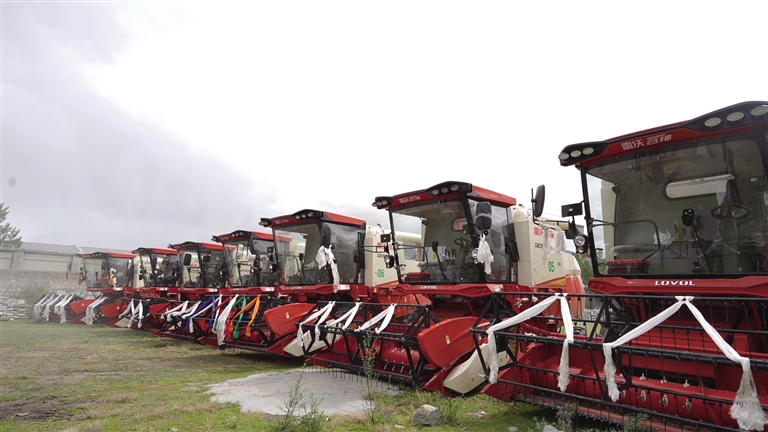在秋意漸濃的金秋時節,山南市滴新社區迎來了一場農(nong) 業(ye) 現代化的大升級。8月14日,隨著一聲聲轟鳴,十台嶄新的聯合收割機整齊排列在社區廣場上,標誌著滴新社區在提升農(nong) 業(ye) 生產(chan) 效率、促進農(nong) 業(ye) 高質量發展的道路上邁出了堅實的一步。此次購置的農(nong) 機具投入資金高達220萬(wan) 元,享受到了政府超過四成的政策性補貼,為(wei) 即將到來的秋收注入了強勁動力,也為(wei) 鄉(xiang) 村振興(xing) 戰略的實施增添了濃墨重彩的一筆。
