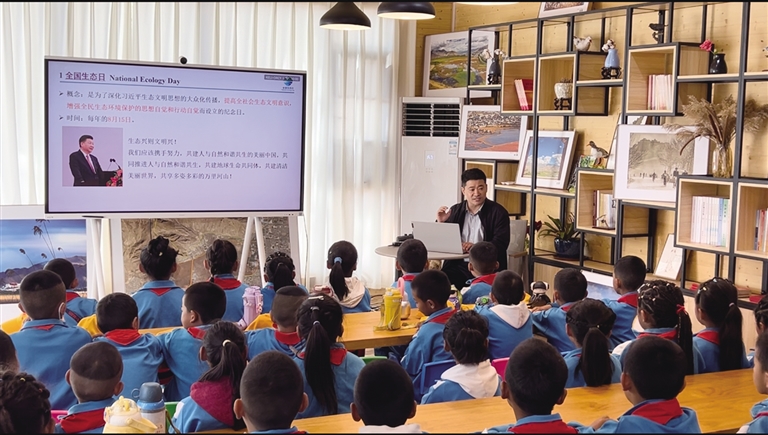 中國科學院地理科學與(yu) 資源研究所為(wei) 小朋友科普“全國生態日”。記者 王靜 攝