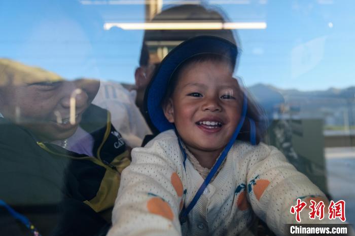 8月16日,西藏拉日鐵路通車十周年。作為(wei) 連接拉薩與(yu) 日喀則間的高原城際鐵路,十年來,拉日鐵路運送旅客超1429萬(wan) 人次,運送貨物超524萬(wan) 噸。圖為(wei) 16日,一位小乘客搭乘C885次動車組列車前往日喀則。中新社記者 江飛波 攝