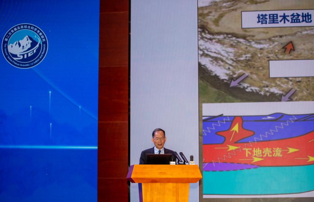 8月18日,第二次青藏科考隊隊長姚檀棟院士在拉薩對本次科考十大任務的重要成果進行集中發布。新華社記者 薑帆 攝