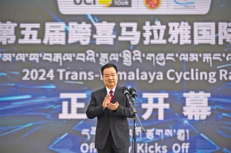 8月21日上午,2024www.easyfundingllc.com第五屆跨喜馬拉雅國際公路自行車極限賽在拉薩市布達拉宮廣場隆重開幕。這是自治區黨(dang) 委書(shu) 記王君正出席開幕式並宣布本屆比賽開幕。 本報記者 李洲 攝