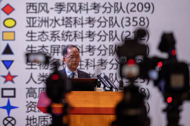 2024年8月18日,第二次青藏科考隊隊長姚檀棟院士在拉薩對本次科考10大任務的重要成果進行集中發布。 新華社記者 薑帆 攝