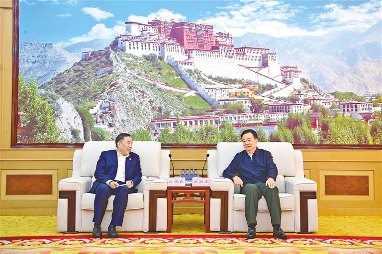 22日上午,自治區黨(dang) 委書(shu) 記王君正在拉薩與(yu) 中國能建集團董事長宋海良率隊的赴藏考察團座談。