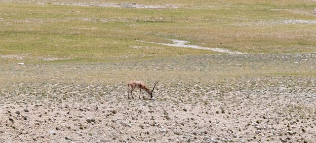 8月24日,一隻公藏羚羊在雅魯藏布江源頭附近的草地上覓食。新華社記者 丁增尼達 攝