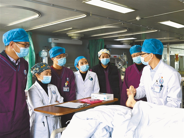 圖為(wei) 北京大學人民醫院對口支援自治區人民醫院重症醫學科醫生帶領當地醫生在病房查房。記者 洛桑 攝