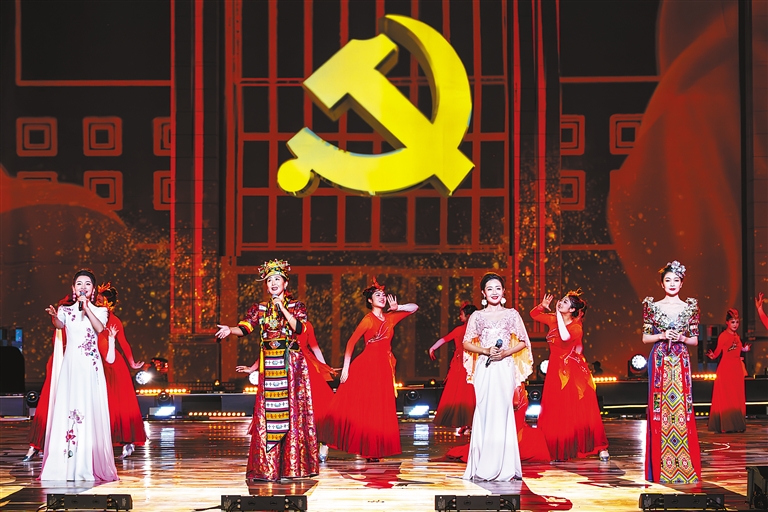 湖南、湖北、安徽三省和中糧集團對口支援山南以來,一批又一批援藏幹部人才把山南當作第二故鄉(xiang) ,與(yu) 各族人民結下了跨越山海的深情厚誼。短片《隻為(wei) 你唱的歌》,展示援藏工作者背後的故事和家屬日常生活中的酸甜苦辣。情境合唱《追風趕月的人》,是一場為(wei) 所有援藏工作者精心設計的特別演出,他們(men) 的家屬共同帶來了一首溫情之歌,送出了家屬們(men) 對援藏工作者的堅定支持和無盡的愛。女子群舞《格桑芙蓉並蒂開》,展現了湖南、山南兩(liang) 地人民心手相牽的美好畫麵。“唱支山歌給黨(dang) 聽,我把黨(dang) 來比母親(qin) ……”山南市三小格桑花合唱團孩子們(men) 的聲音直抵人心,隨後湖南、湖北、安徽和山南的歌手們(men) 共同唱響《唱支山歌給黨(dang) 聽》。