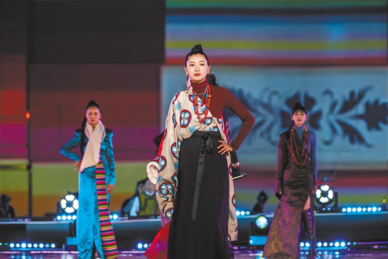 服裝秀表演《天上的羊卓雍措》在晚會(hui) 中驚豔亮相。係列服飾完美融合了藏族傳(chuan) 統服飾元素與(yu) 當代時尚潮流,是由湖南省援藏工作隊株洲工作組的成員們(men) 以紮囊縣氆氌為(wei) 原料創作而成。開幕式總導演李詞嶽說:“為(wei) 了更好地展現舞台效果,我們(men) 團隊克服高原反應,專(zhuan) 門前往羊卓雍措拍攝服裝秀相關(guan) 素材,希望通過這次服裝秀讓更多人了解山南、走進山南。”