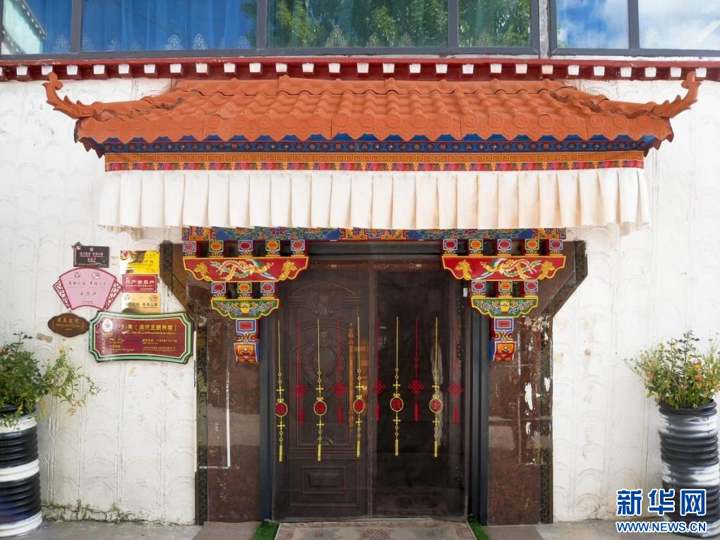 圖為(wei) 紮西曲登社區內(nei) 民宿的大門(9月3日攝)。新華網發 文翔宇攝