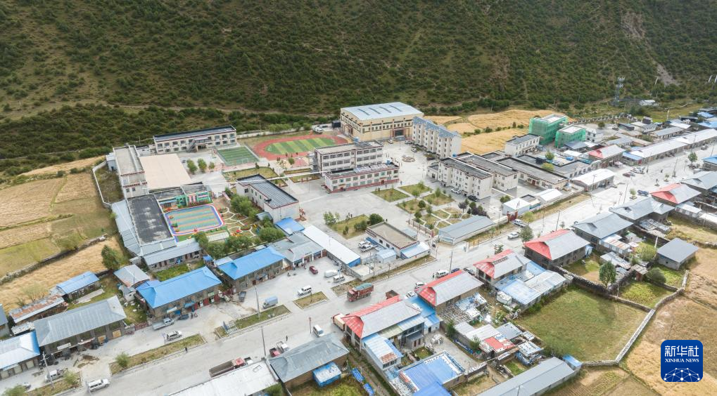 這是無人機拍攝的林芝市工布江達縣娘蒲鄉(xiang) 中心小學全貌(無人機照片,9月4日攝)。新華社記者 晉美多吉 攝