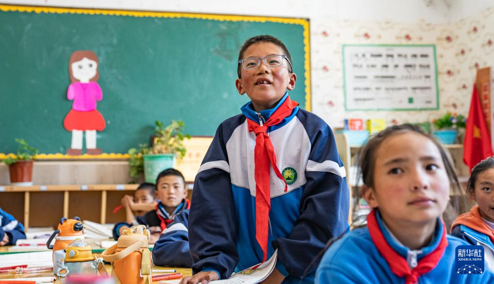 娘蒲鄉(xiang) 中心小學學生貢喬(qiao) 熱旦正在課堂上回答問題(9月3日攝)。新華社記者 丁增尼達 攝