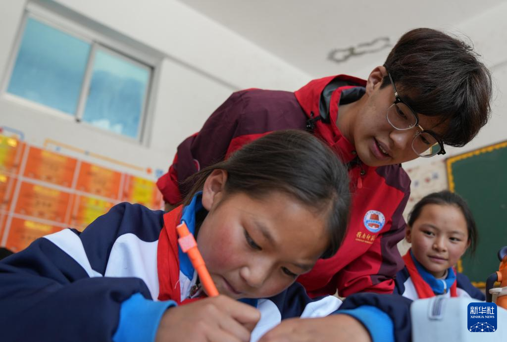 胡正培輔導學生課業(ye) (9月3日攝)。新華社記者 晉美多吉 攝