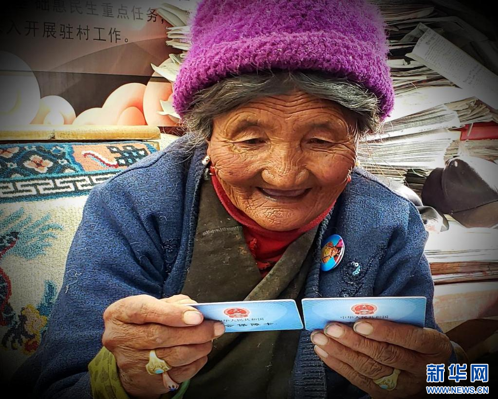 圖為(wei) 老人拿到社保卡後麵露喜悅。 受訪者供圖