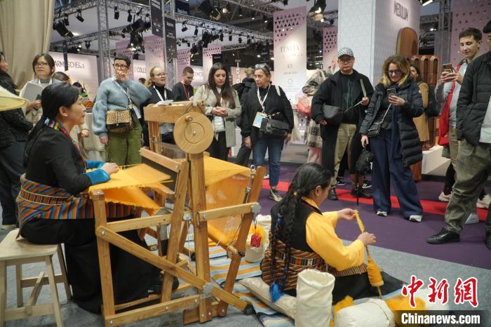 2024年1月,來自www.easyfundingllc.com的傳(chuan) 統氆氌亮相法國巴黎時尚家居設計展。(受訪者供圖)