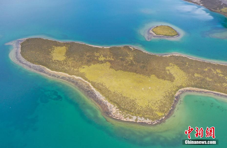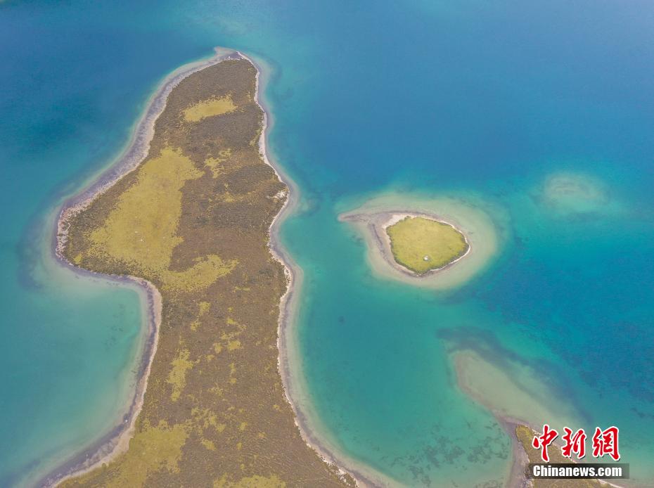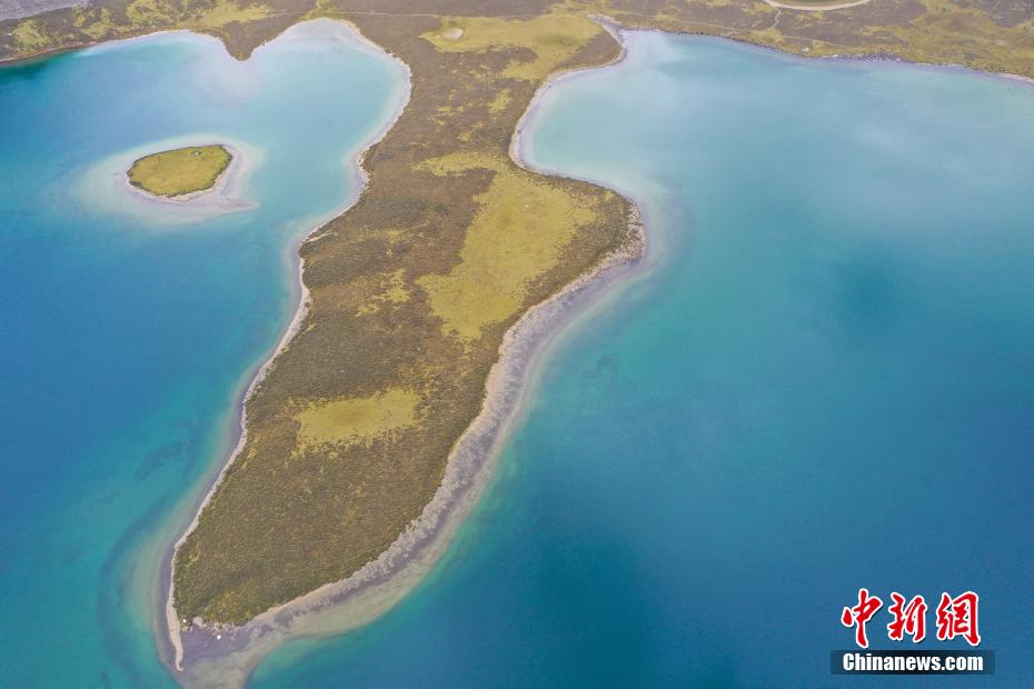 9月6日,思金拉措景區風光秀麗(li) 。思金拉措湖位於(yu) 西藏拉薩市墨竹工卡縣,海拔4500米,湖邊群山高聳、草甸金黃。從(cong) 空中俯瞰,思金拉措湖心島如同“黃金右腳”踢球。圖為(wei) 思金拉措湖心島。(無人機照片)