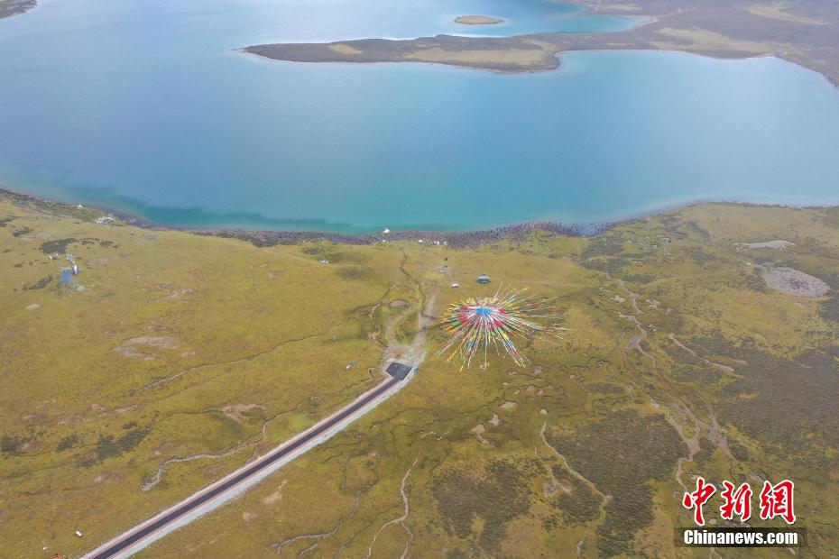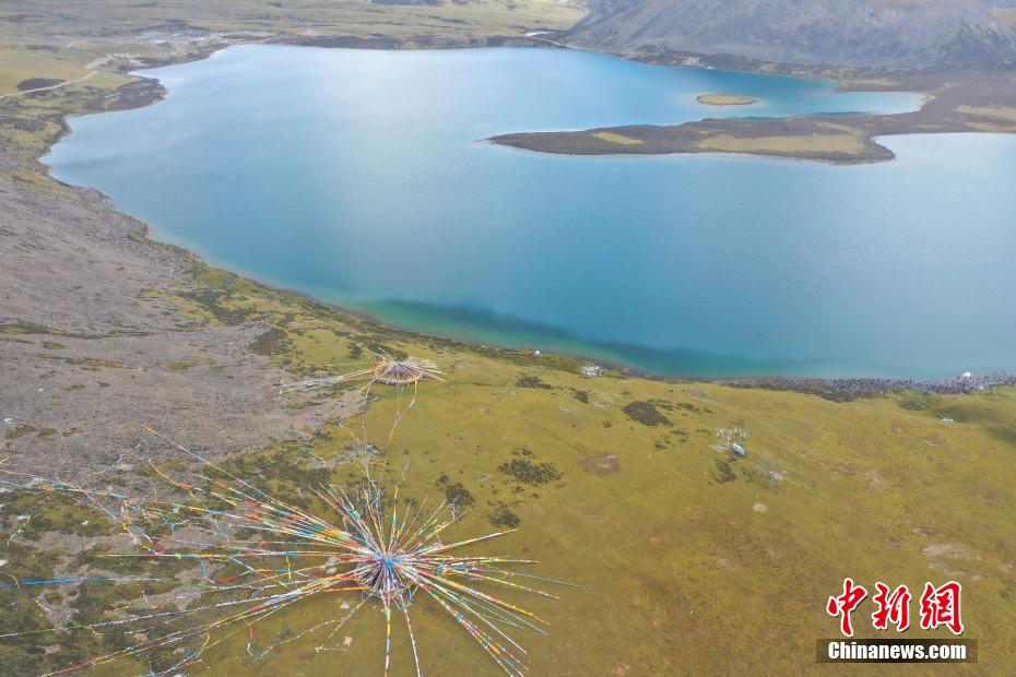9月6日,思金拉措景區風光秀麗(li) 。思金拉措湖位於(yu) 西藏拉薩市墨竹工卡縣,海拔4500米,湖邊群山高聳、草甸金黃。從(cong) 空中俯瞰,思金拉措湖心島如同“黃金右腳”踢球。圖為(wei) 思金拉措一角。(無人機照片)