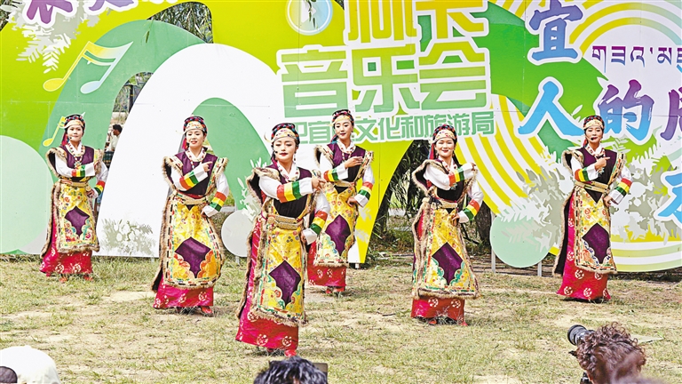 圖為(wei) 在尼洋河畔濱江公園舉(ju) 行的林卡主題音樂(le) 會(hui) 演出現場。