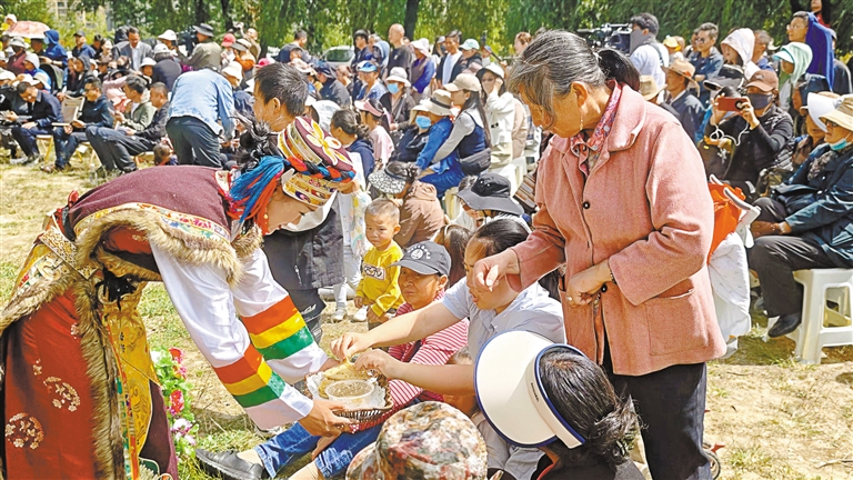 現場設置了工布藏族服飾比賽、傳(chuan) 統美食體(ti) 驗及農(nong) 特產(chan) 品試吃、藏骰體(ti) 驗等活動。一場別開生麵的非遺與(yu) 美食的碰撞,讓市民、遊客盡享“文化大餐”。來自巴宜區四鎮三鄉(xiang) 的蕎麥餅、酸奶醬、藏香豬、藍莓、玫瑰茶等出現在傳(chuan) 統美食體(ti) 驗及農(nong) 特產(chan) 品試吃活動中,吸引不少市民、遊客駐足品嚐,近距離享受著非遺帶來的韻味與(yu) 魅力。