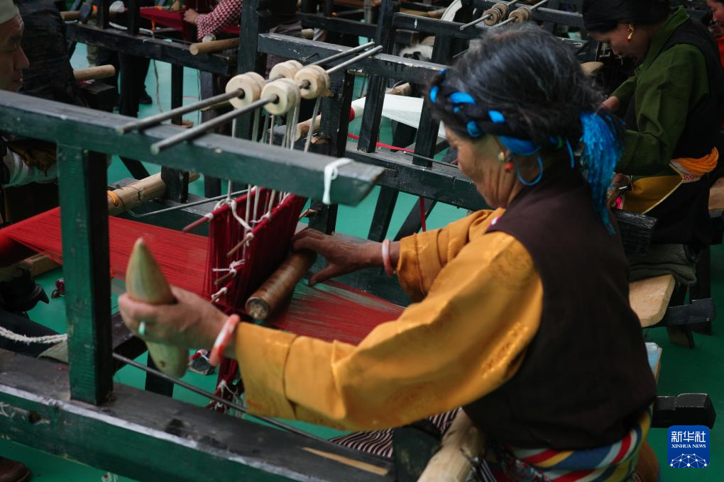 西藏日喀則市仁布縣特色產(chan) 業(ye) 孵化園,亞(ya) 德細褐合作社紡織工人在紡織