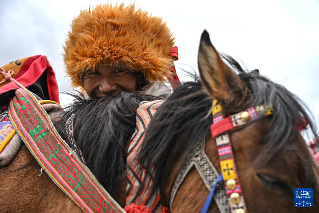 9月8日,在普蘭(lan) 縣巴嘎鄉(xiang) 崗莎村,村民靠在自己飼養(yang) 的用於(yu) 載客的馬匹上。新華社記者孫瑞博 攝