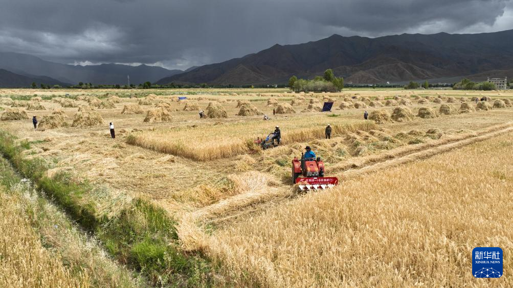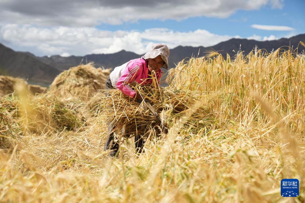 收獲季節,享有“西藏糧倉(cang) ”美譽的日喀則田野一片金黃。在日喀則市白朗縣巴紮鄉(xiang) ,農(nong) 民采用機械化、半機械化收割方式,高效收獲成熟的青稞。
