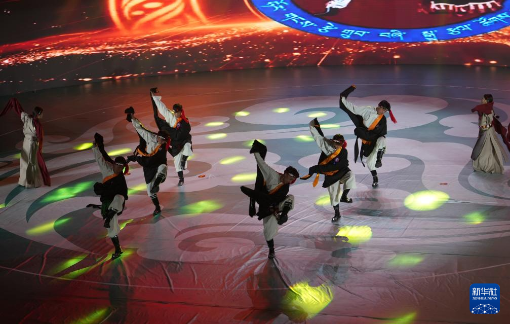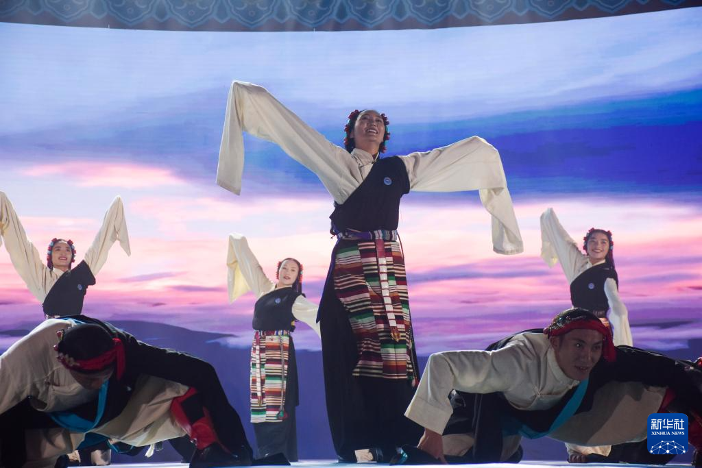 9月15日,演員在開幕式上表演藏戲。新華社發(盧丹陽攝)
