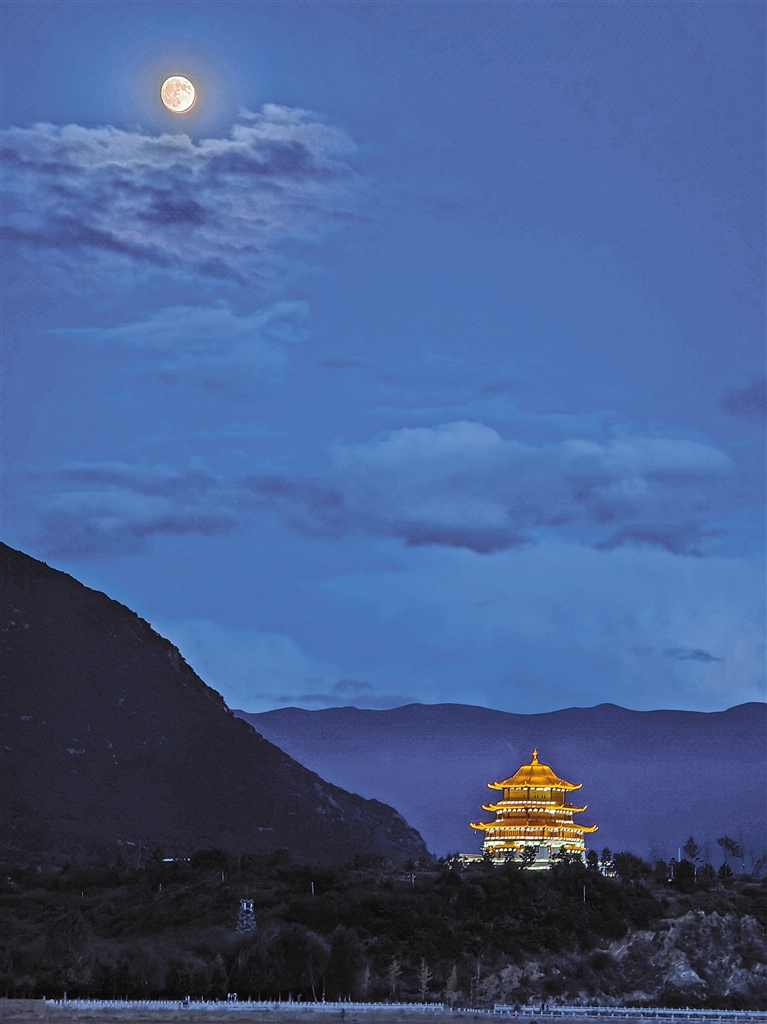 圖為(wei) 在林芝市巴宜區尼洋河畔眺望中秋圓月和尼洋閣。記者 謝筱純 王珊 攝